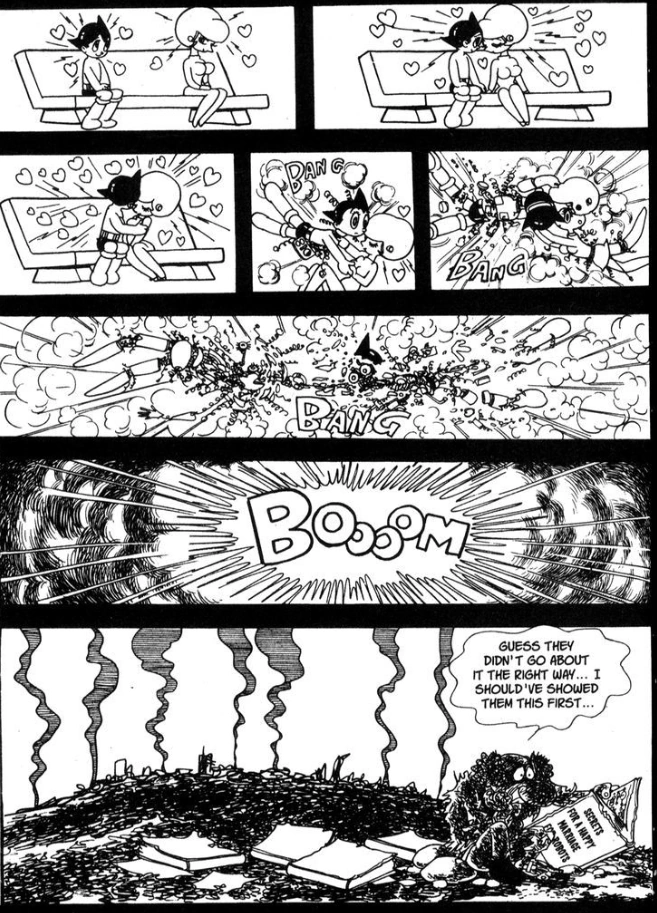Astro's First Love ("Atomu no hatsukoi" アトムの初恋マズ) - originally titled "Atom's First Love," and later, "Astro Boy's First Love" - is a one-page gag chapter of the Astro Boy manga which originally ran in Shogakukan's Big Comic magazine in March 1969.