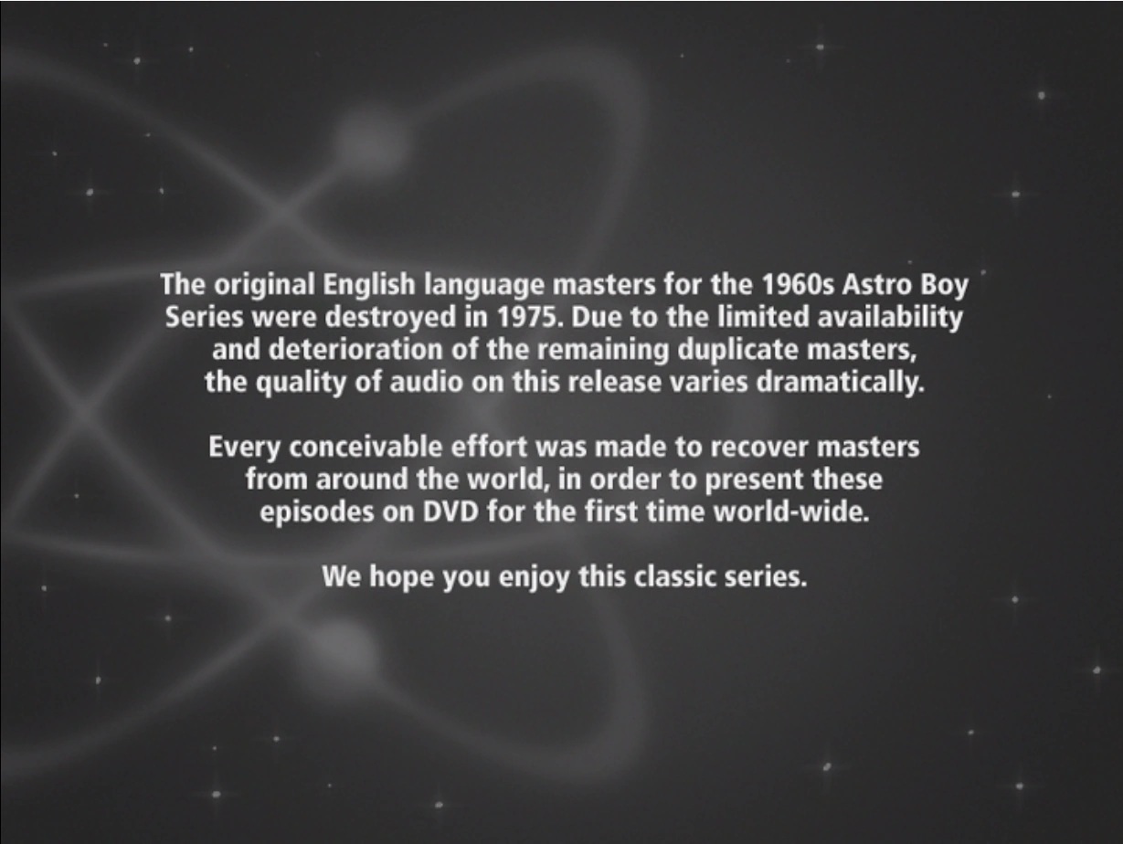 The warning at the beginning of the Astro Boy DVD about the fire during 1975
