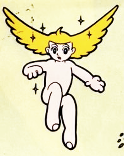 Bem is an androgynous humanoid robot made on a planet named Nicoro. They appear slightly older than Astro, and were designed to look similar to the cherubim of Renaissance Era art. They have fluffy blonde hair, which is moulded with slicked-back bangs and two long, feathered wings. These wings also allow Bem to fly, and they have been mistaken for an angel while flying through the air. In their original manga appearance, Bem is completely nude, and visibly lacks any secondary sex characteristics. In the 1963 anime, however, they wear a white undergarment similar Astro's shorts.