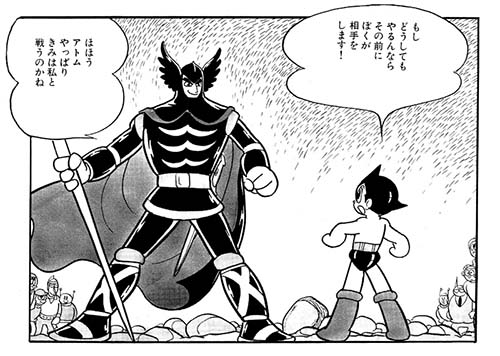 The Blue Knight (aka Blue Bon) is a renegade super-powered robot who crusades for robot rights. He is bold and noble like a medieval knight, but secretly holds a tragic past. Unlike Astro Boy, the Blue Knight despises humans, and sees them as a threat to robots everywhere.