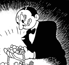 From this point, Hamegg's design appears throughout the 1963 series as a part-time criminal, an odd-job worker or at times a scientist, under various names. As per the Tezuka Star System, these are not instances of Hamegg himself reappearing, rather the design is recycled to depict entirely separate characters.