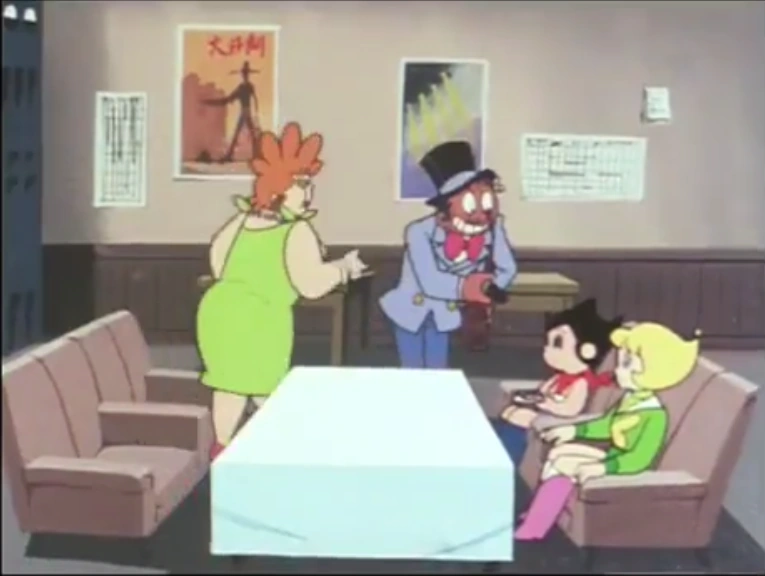 Hamegg meets Astro on a cruise ship early in the 1980 series, after Astro accidentally destroys a dinner party on the ship. Hamegg convinces Astro that he can take him to a freer, happier life, but forces the boy to sign an ownership contract and stuffs him in a box. Astro is then taken to work in his traveling robot circus in America.
