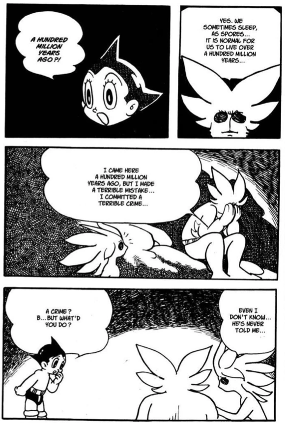 The 100 Million Year Old Crime ("Ichiokunenmae no hanzai" 億年前の犯罪) is a chapter of the Astro Boy manga which originally ran in Shonen magazine in March 1967.